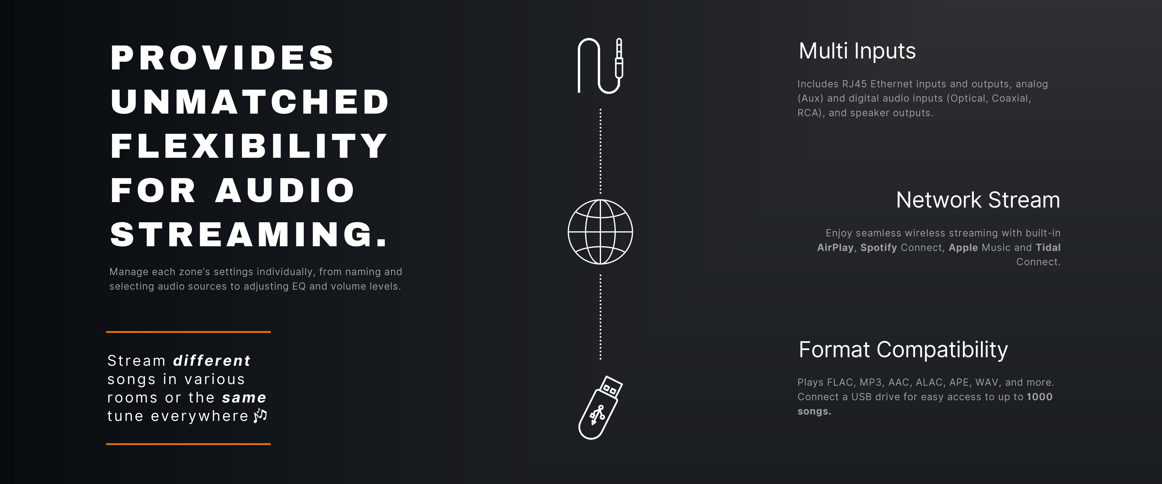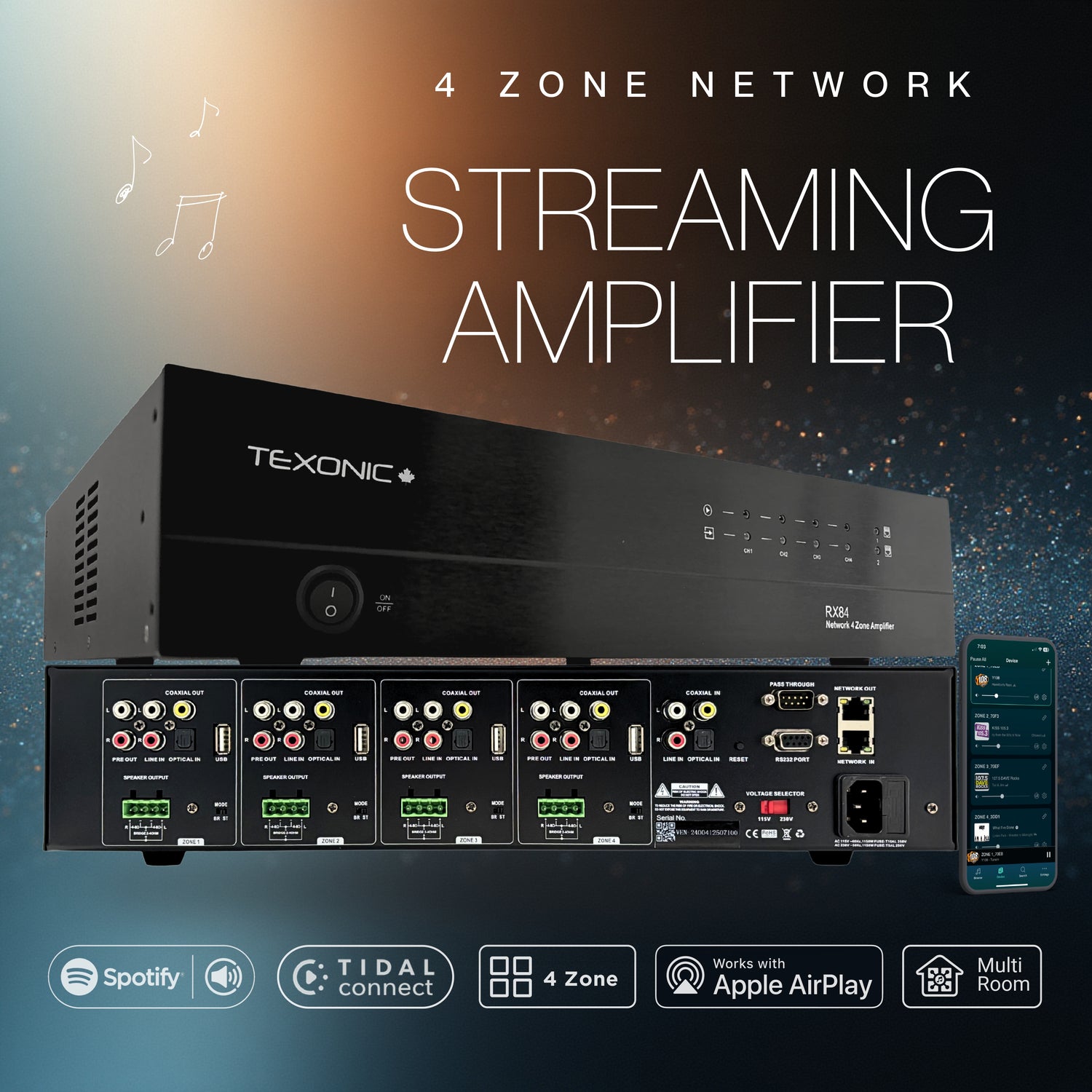 Meet our RX84, a powerhouse 4-zone network streaming amplifier that brings high-resolution sound to your entire home or office