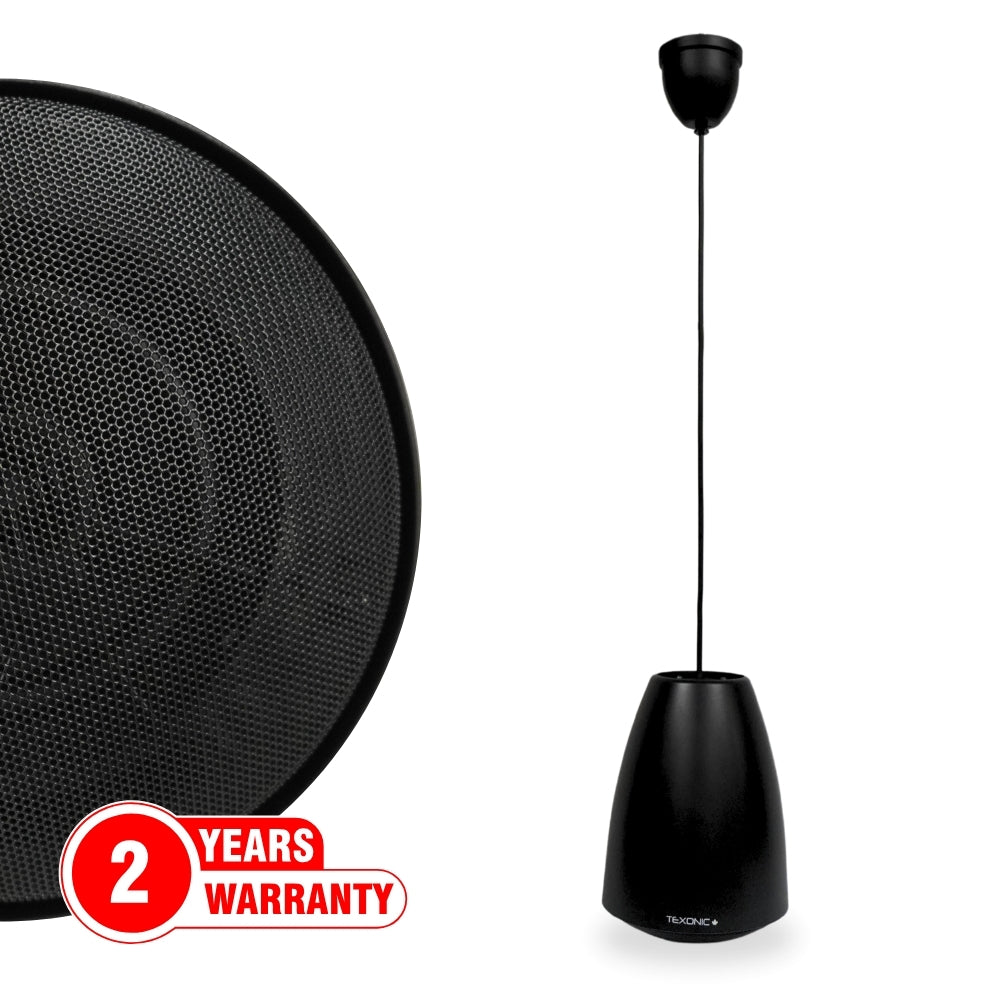 TEXONIC Black 5" 2-Way Pendant Speaker – Commercial Ceiling Hanging Speaker for Background Music & Paging