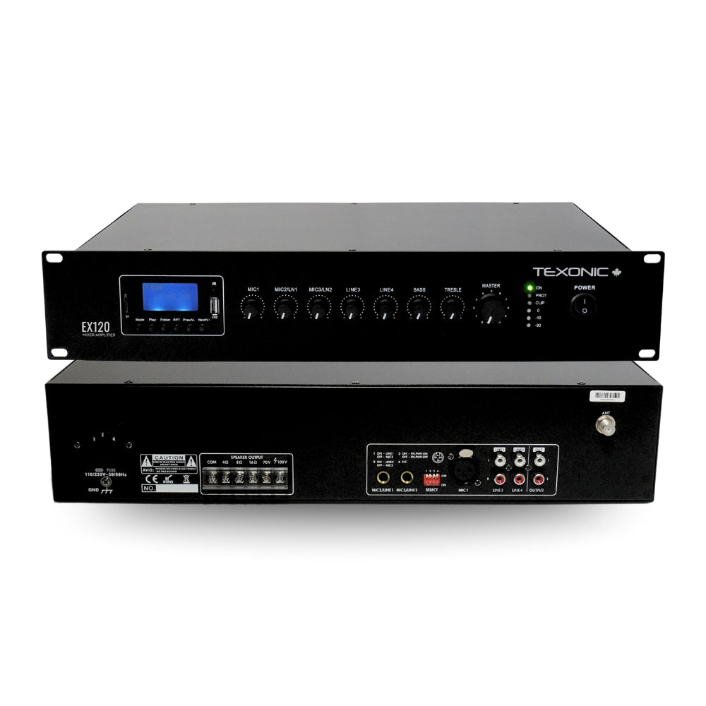 You'll also get a powerful 120-watt rack-mountable mixer amplifier. This heavy-duty amplifier supports FM radio, Bluetooth, and MP3 playback, making it versatile for all your paging needs. Check out the TEXONIC Commercial Mixer Amplifier here.