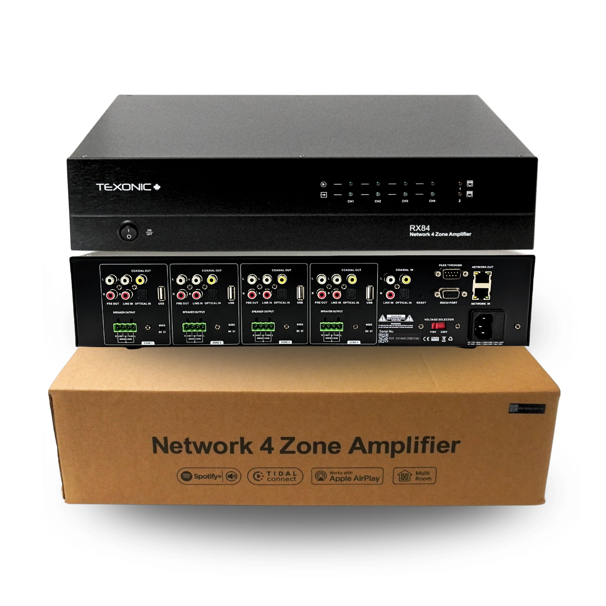 TEXONIC RX84 | 4 Zone Network Streaming Amplifier – Multi-Room Audio for Home & Business